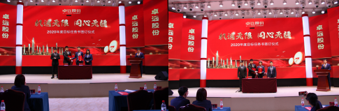 在全面總結(jié)2019年度工作后,卓遠(yuǎn)股份總經(jīng)理李付敏與各項目管理團(tuán)隊共同簽署2020年度目標(biāo)任務(wù)書,明確2020年各項目任務(wù)指標(biāo)。