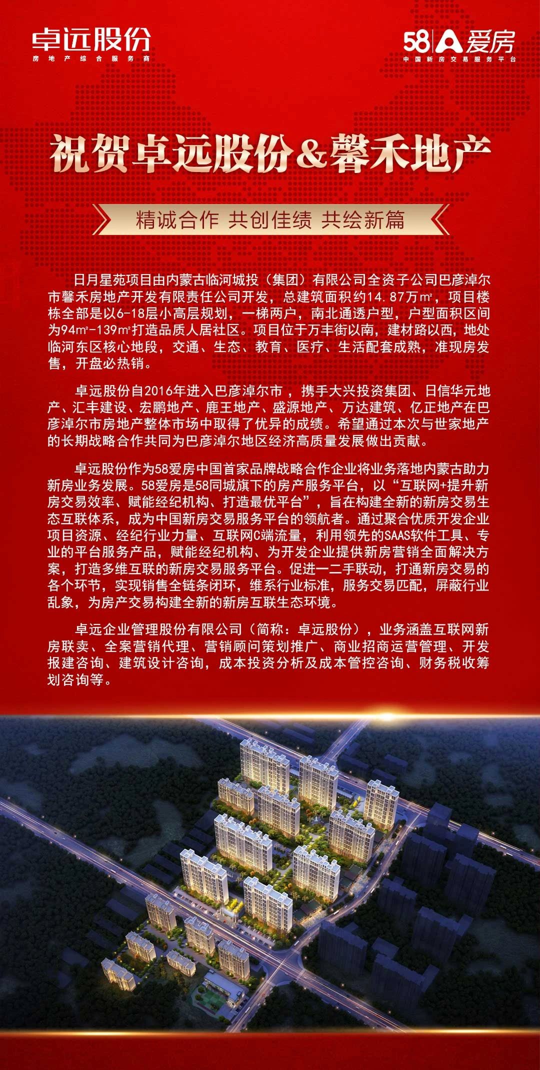 卓遠(yuǎn)股份自2016年進(jìn)入巴彥淖爾市,攜手大興投資集團(tuán)、日信華元地產(chǎn)、匯豐建設(shè)、宏鵬地產(chǎn)、鹿王地產(chǎn)、盛源地產(chǎn)、萬(wàn)達(dá)建筑、億正地產(chǎn)、中泰地產(chǎn)、世家地產(chǎn)在巴彥淖爾市房地產(chǎn)整體市場(chǎng)中取得了優(yōu)異的成績(jī)。希望通過(guò)本次與馨禾地產(chǎn)的長(zhǎng)期戰(zhàn)略合作共同為巴彥淖爾地區(qū)經(jīng)濟(jì)高質(zhì)量發(fā)展做出貢獻(xiàn)。
