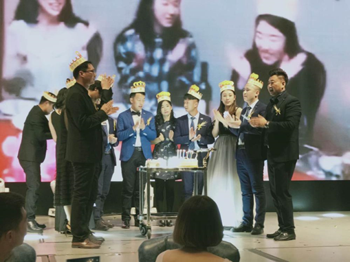 晚會期間,公司為過生日的家人們精心籌備了生日會,大家一同唱響祝福滿滿的生日歌曲,幸福洋溢全場。